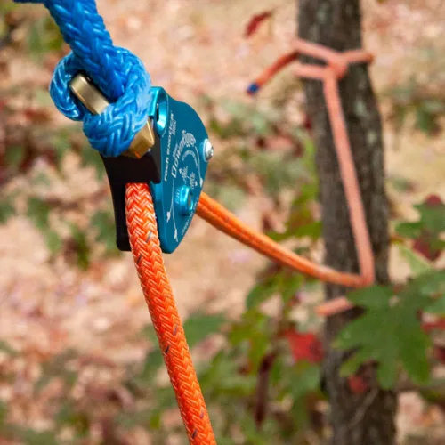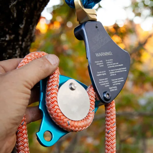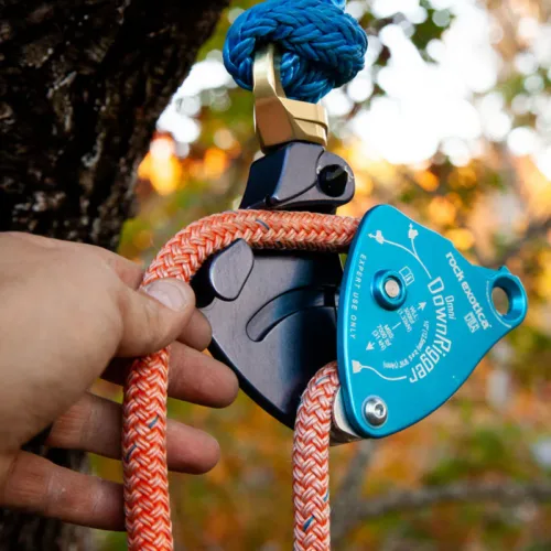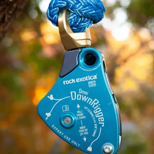 El DownRigger aplica fricción a la línea de aparejo cuando la carga la pesa, lo que permite al operador controlar el descenso con la mano. Sin peso, la línea se retrae fácilmente a través del dispositivo para restablecer el sistema. El DownRigger cuenta con la conocida parte superior giratoria de Rock Exotica que permite una fácil alineación con la carga y la placa lateral de doble bloqueo que hace que la instalación de la cuerda sea más eficiente.