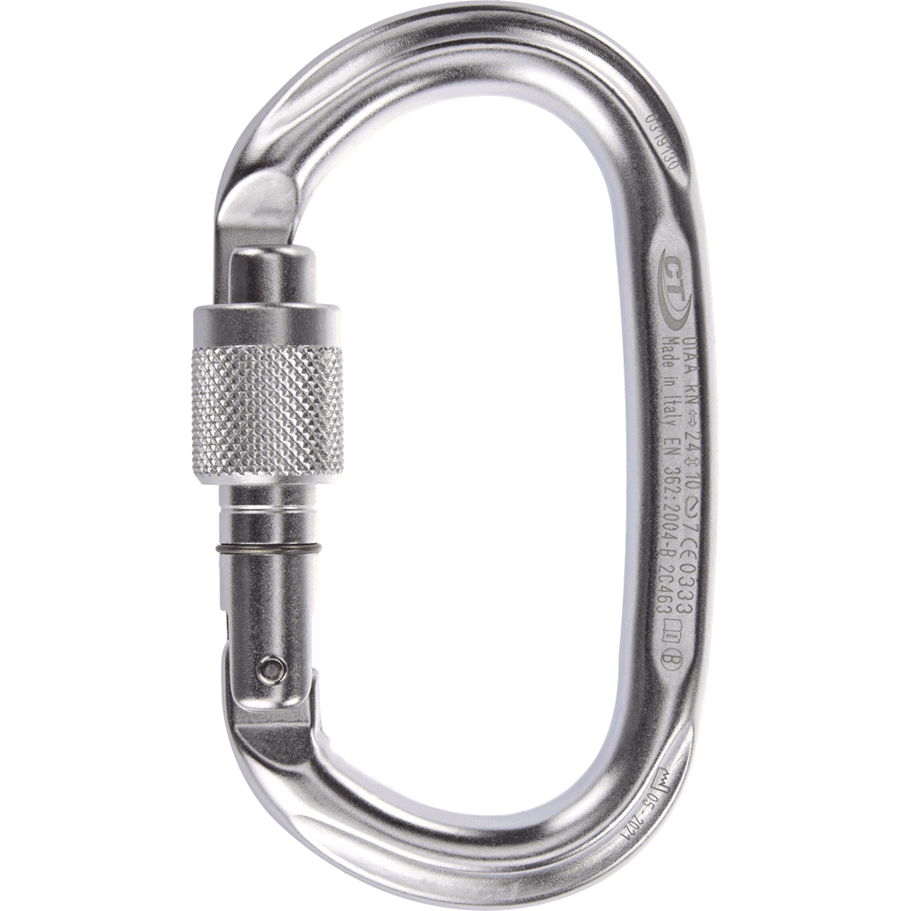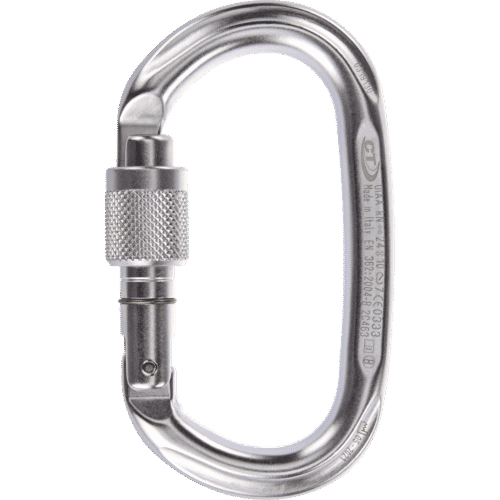 Mosquetón de forma oval de aleación ligera con cierre de rosca, diseñado para el uso en alpinismo, escalada artificial, big-wall, espeleología y rescate.