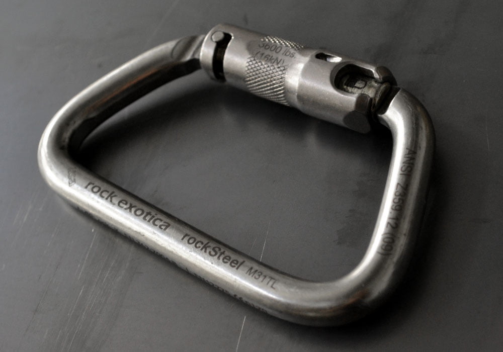 El rockSteel ofrece una sorprendente relación resistencia-peso en un mosquetón de su capacidad. La mayoría de los mosquetones de acero están hechos de acero de 1/2 de diámetro. Usamos un acero más liviano, de 7/16” de diámetro, tratado térmicamente para mayor resistencia.