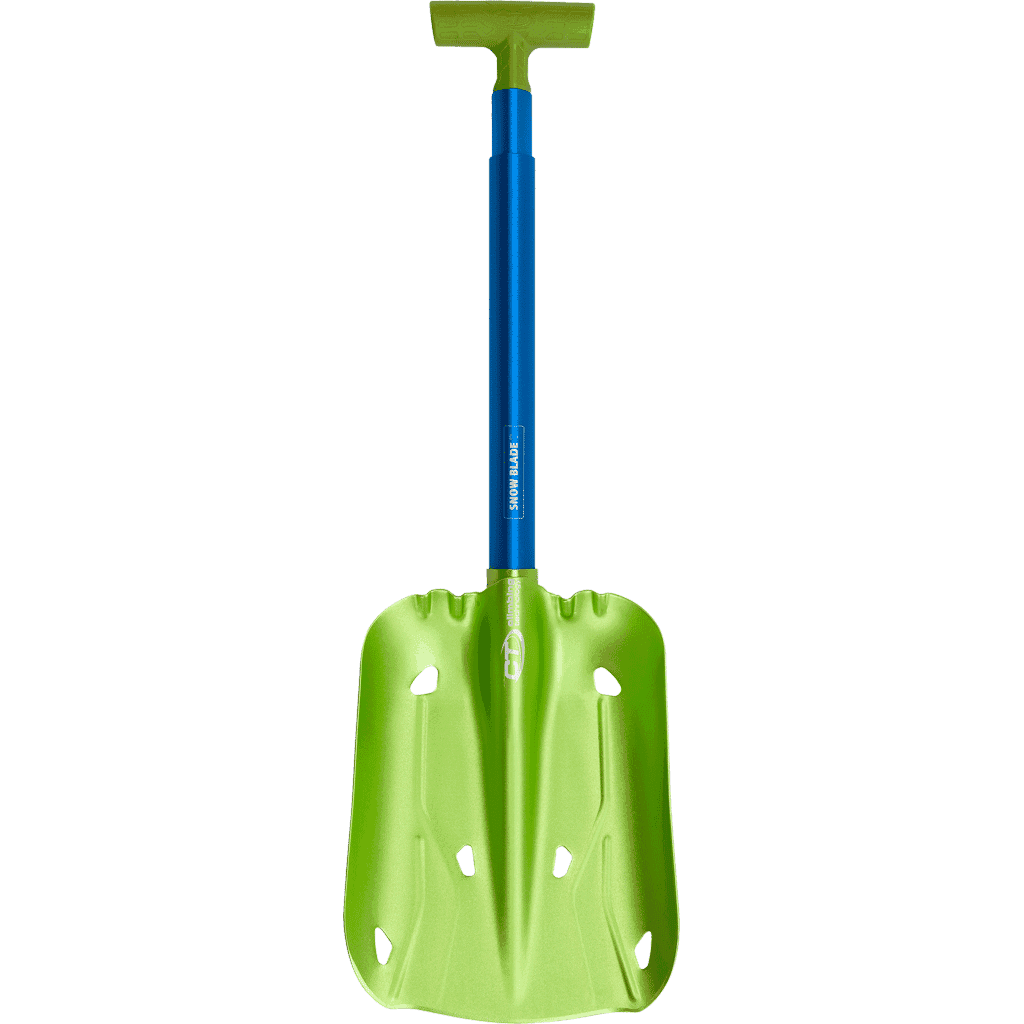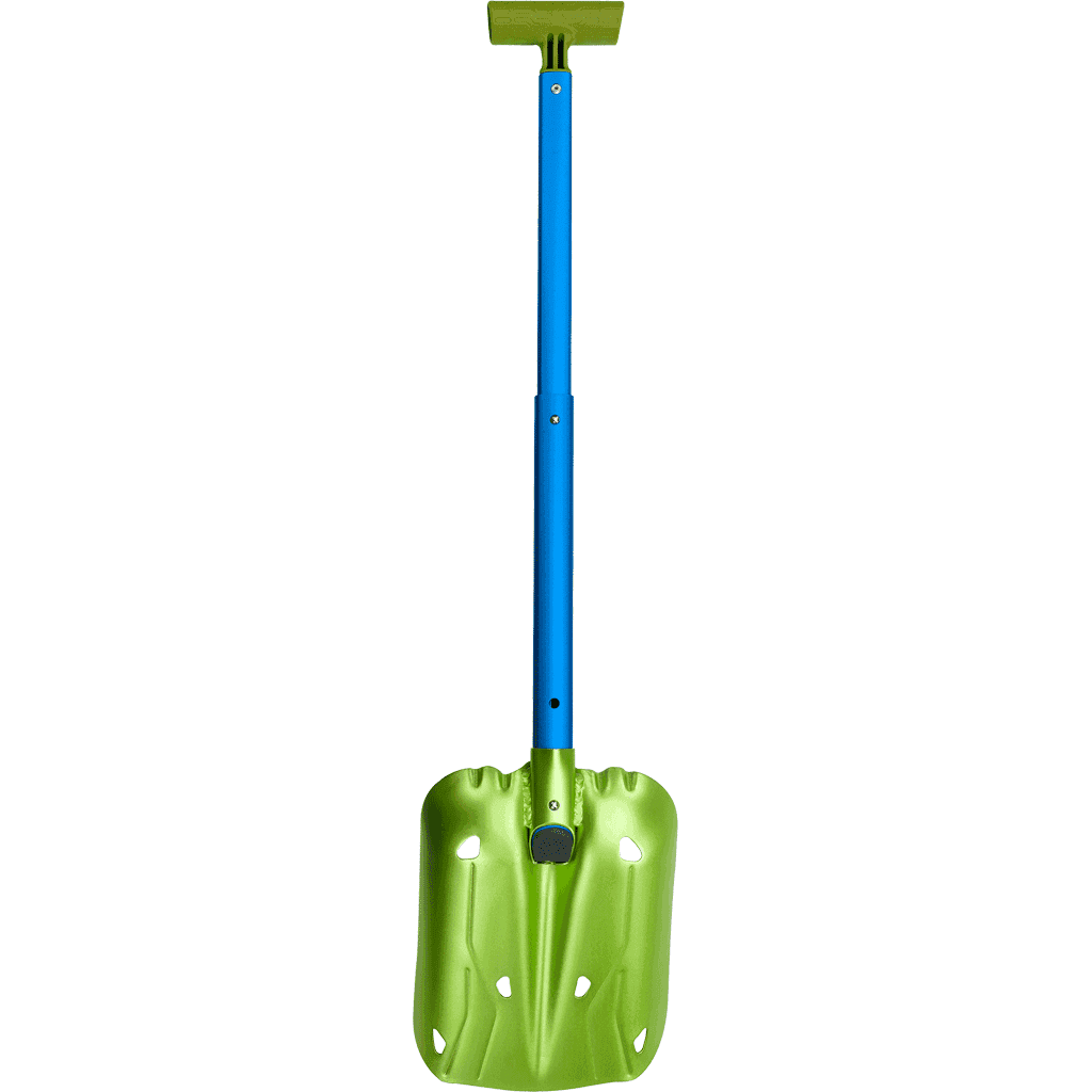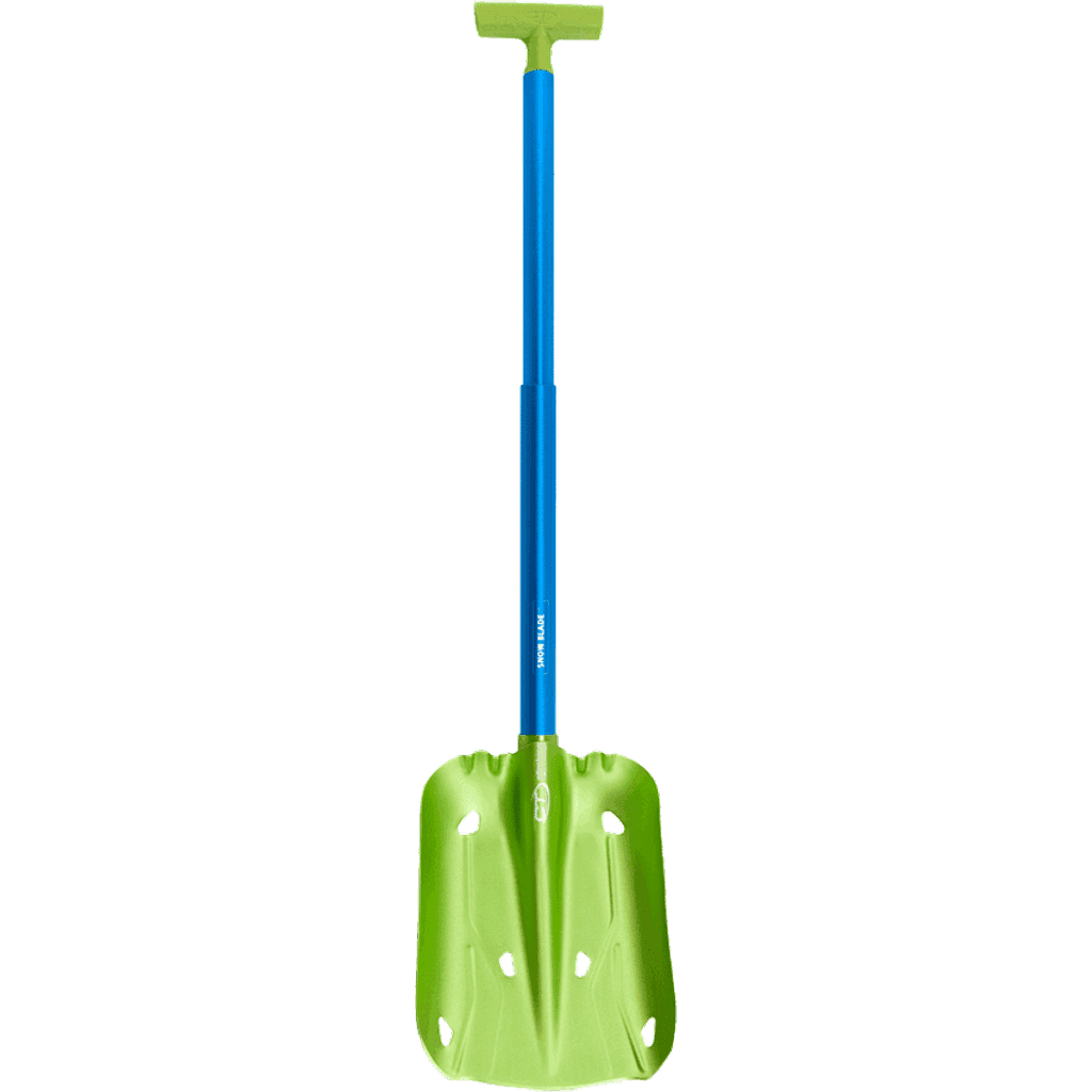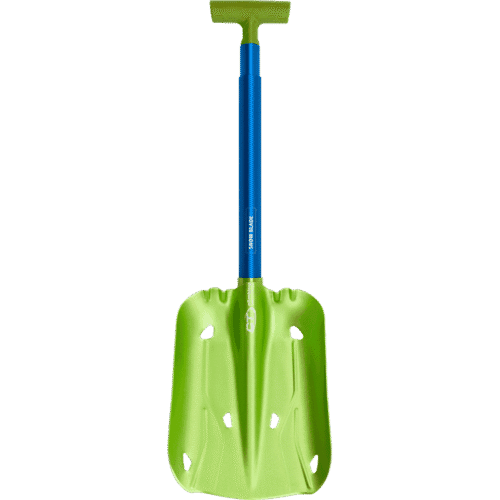 Pala de nieve en aluminio para esquí de montaña y alpinismo , con mango ergonómico, para un buen agarre durante el uso y una mayor eficiencia durante la excavación. La pala tiene unas nervaduras que aumentan la rigidez y orificios para utilizarla come punto de anclaje en la nieve.